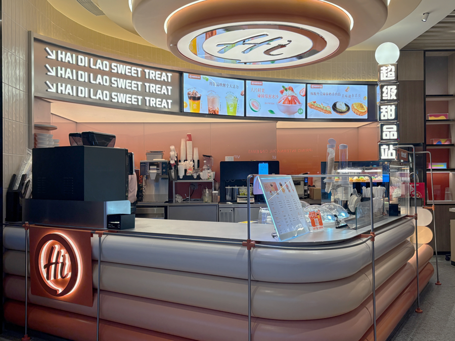 图为海底捞首家超级甜品站,位于上海中庚漫游城海底捞
