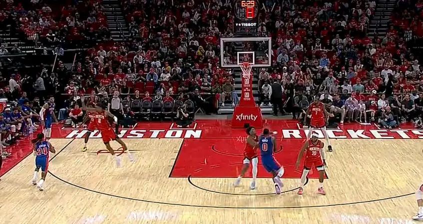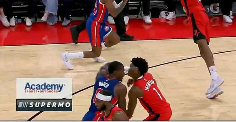 北京时间10月25日,火箭主场VS活塞,这场比赛两队的对抗非常激烈,第二节杜伦与阿门发生了冲突,杜伦先是推搡了阿门一把,下一个回合杜伦直接肘击阿门头部,裁判看了回放后给了杜伦二级恶意直接驱逐,他成为新赛季第一个被驱逐的球员。