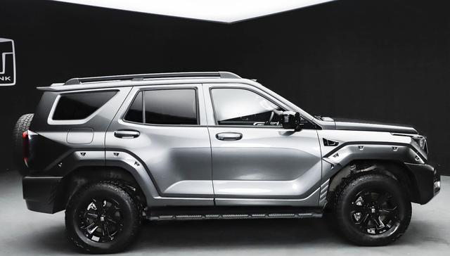 首先外观上,完全与传统越野车的风正风格造型区别开来,它采用的是星际机甲美学设计语言,整车几乎没有曲线,都是棱角折线、切割线,看起来是非常的硬核,同时这次的大灯灯光点亮时会更加明亮,并且下方的散热孔面积也变大了,散热能力更强,另外这次也是新增了敦煌紫的车身配色,也是质感满满。